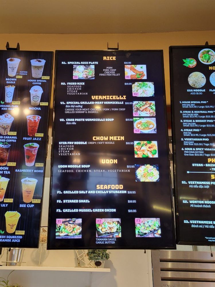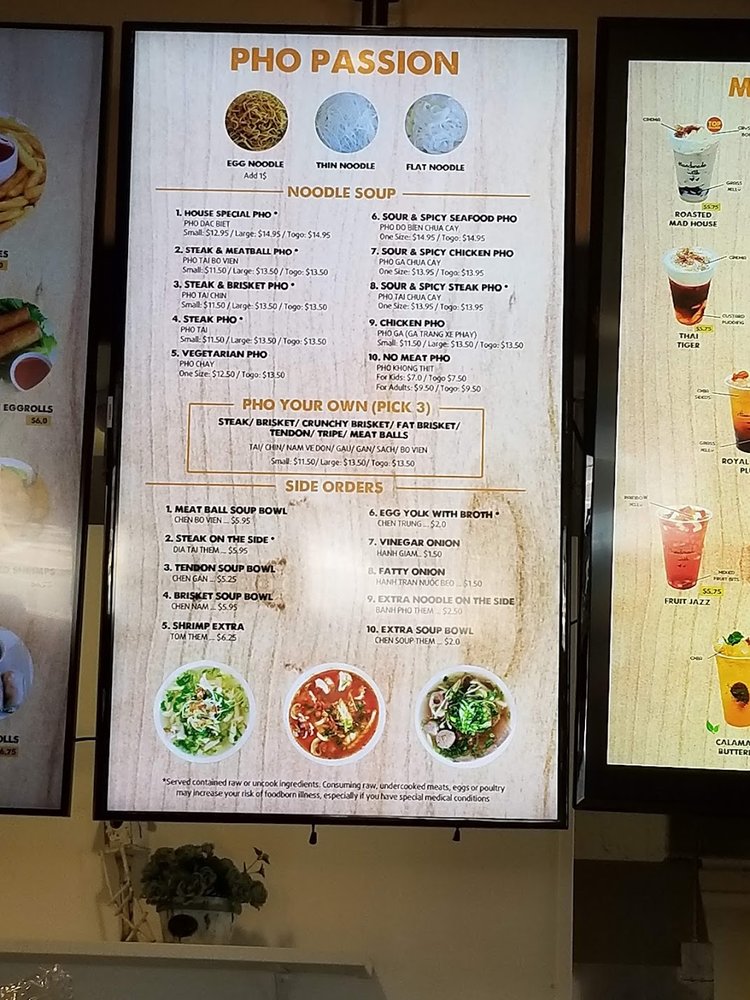 Pho Passion and Mintea Bar, located in San Jose, offers a diverse menu featuring Vietnamese cuisine, coffee, tea, and noodle soups. The restaurant boasts a range of amenities including reservations, delivery, takeout, and even accepts cryptocurrency. Customer reviews praise the fresh ingredients, attentive service, and unique dishes like Sour & Spicy Steak Pho and Thai Banana Crepes. The atmosphere is described as trendy and casual, with a cute robot waiter adding to the charm. With options for appetizers, noodle soups, and customization with Pho Your Own, Pho Passion and Mintea Bar caters to a variety of tastes. Overall, the restaurant's clean environment, friendly staff, and delicious offerings make it a must-visit for anyone craving authentic Vietnamese flavors in a welcoming setting.